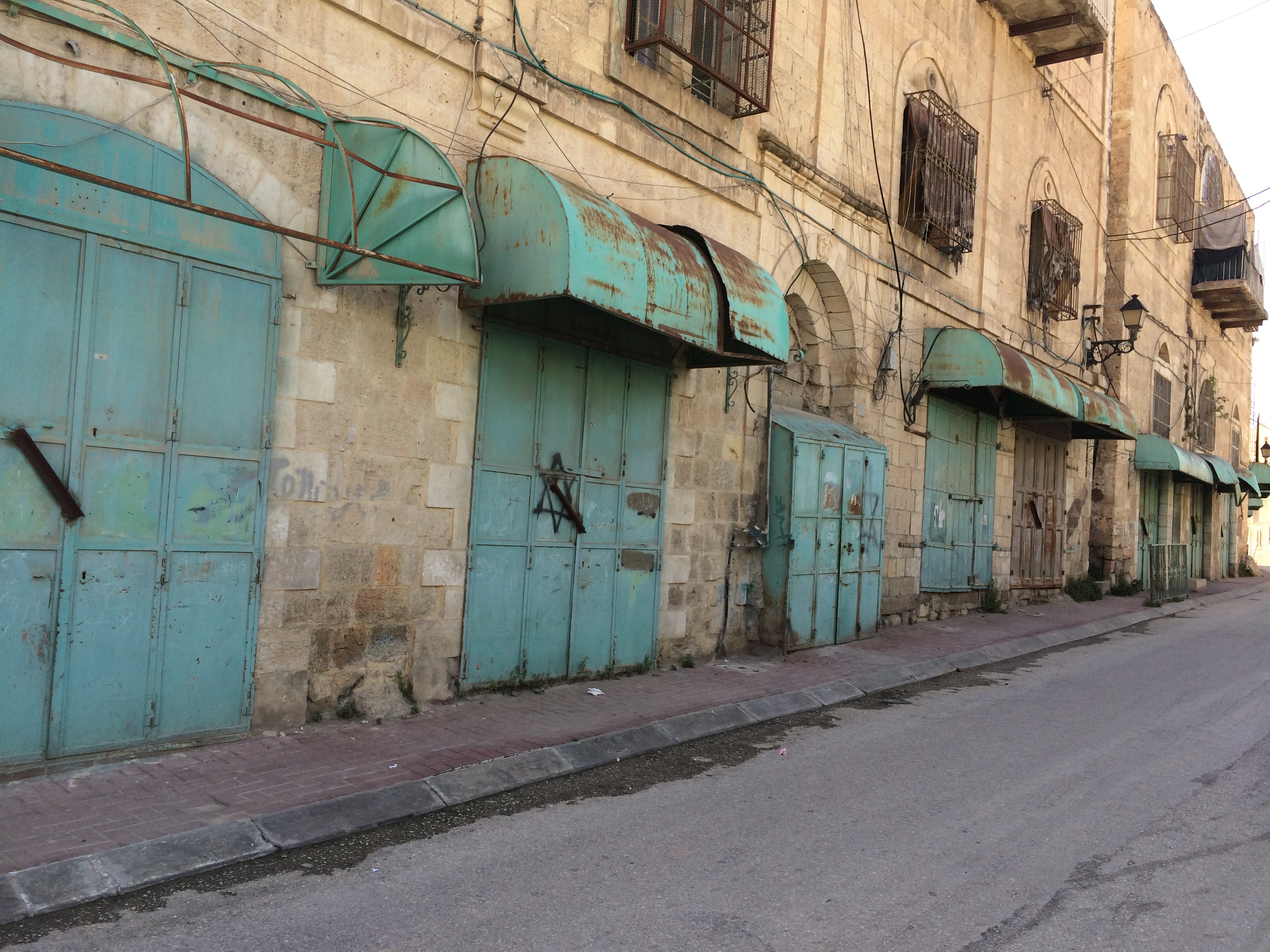 You can see the barred shops. The doors are welded shut and the shop owners are not even allowed inside their own buildings. What a sad and desolate sight is Shuhada Street.