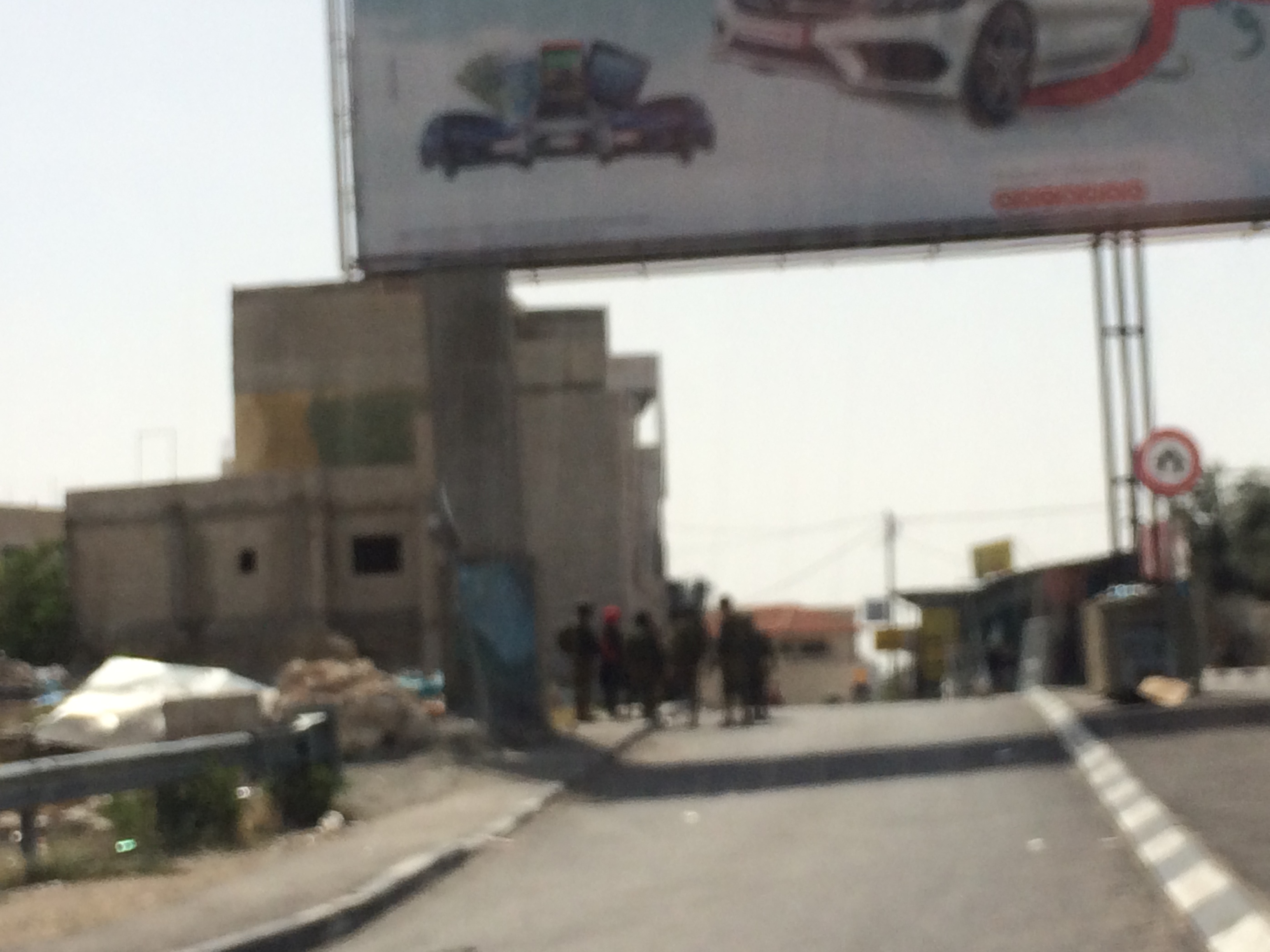 . . . while the Palestinians were herded into a queue outside to wait to be checked. They also spent quite a bit of time grilling our bus driver and on the telephone dealing with him for God knows what reason.