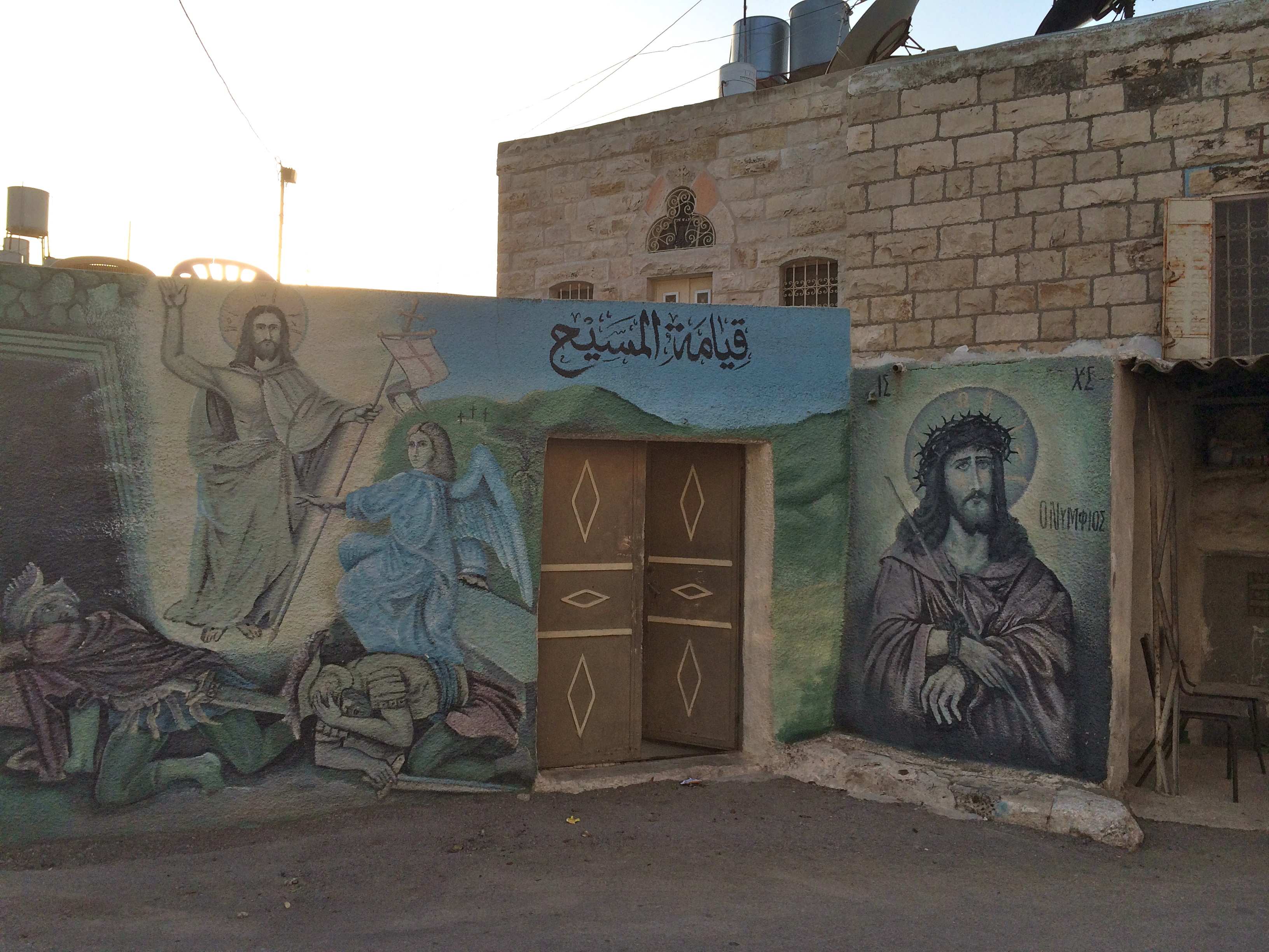 Before sharing lovely pictures of Jerusalem, I am compelled to talk about the trip into Jerusalem. Bethlehem and Jerusalem are very close to each other, but you would never know that anymore because of Israel’s slow, deliberate attempt to sequester all of Jerusalem and its surrounds. I’ve shown a picture of the separation wall in Bethlehem where people would pass from one city to the other.